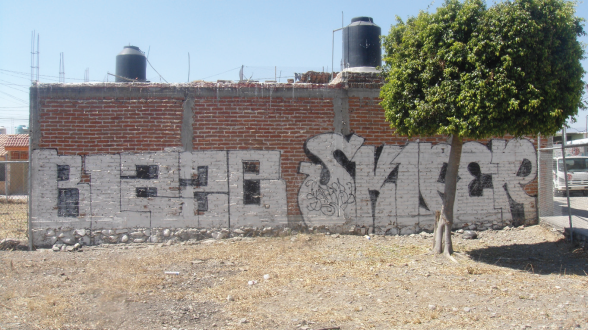 Una versión de la cultura hip hop se presenta actualmente en la ciudad de Ameca. En México escasean los estudios de la cultura hip hop desde las ciencias sociales, teniendo en cuenta la cantidad y diversidad de manifestaciones en las diferentes ciudades y localidades urbanas y “rurales” del país.21 Nosotros inferimos el significado de los objetos gráficos de este tipo de cultura en el contexto local. Decidimos solamente estudiar estos objetos de la cultura hip hop porque parecen ser los de mayor uso y consumo cotidiano en el espacio público de la ciudad.