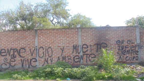 En los muros de ciertos nodos de la ciudad son comunes los mensajes con palabras e imágenes. En la zona comercial del centro hay anuncios de diversos tamaños y colores. En algunas avenidas principales se leen nombres de agrupaciones de música de banda sinaloense escritos con letras coloridas de mediano y gran tamaño, y propaganda de gran formato de diferentes partidos políticos. Todas estas inscripciones no sorprenden a los residentes de la ciudad, son legítimas y cotidianas, sirven para cumplir determinada función social.