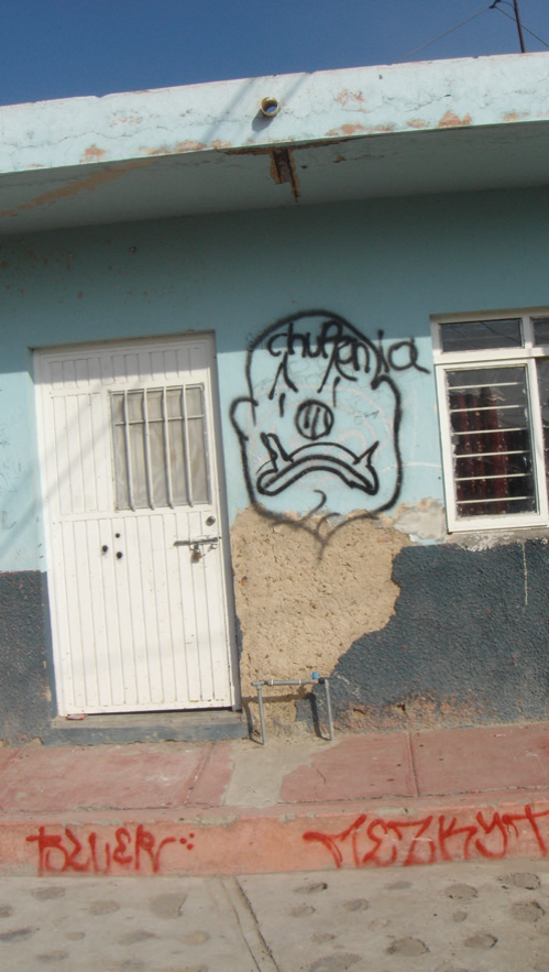 Mención aparte merece el grafiti que ocupa algunos muros de colonias y barrios céntricos y periféricos, y ciertos sitios de carácter comercial y público. Aquí, como en otros lugares, hay grafiti “clandestino” y “legal”; es decir, las piezas que son elaboradas con la anuencia y el apoyo de agentes del Estado, empresarios privados o ciudadanos, y las hechas de forma autogestiva, anónima y transgresora. Luego de recorrer casi la totalidad de las calles de la ciudad ubicamos los grafitis marcados en muros accesibles desde la calle según tipo, independientemente del material (poster, esténcil, brocha, aerosol) o el tipo de muro. Después organizamos las piezas de acuerdo con los temas señalados.44