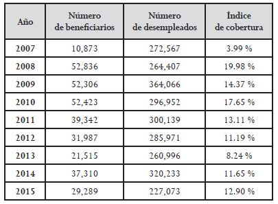 Mazza, Jacqueline. “Unemployment Insurance: Case Studies and Lessons for Latin American and the Caribbean”, Banco Interamericano de Desarrollo 411 (marzo de 2000), disponible en “Unemployment Insurance: Case Studies and Lessons for Latin American and the Caribbean”, Banco Interamericano de Desarrollo 411 (marzo de 2000), disponible en https://publications.iadb.org/handle/11319/1311 (consultado el 18 de mayo del 2016).
