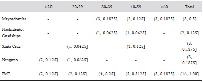 En otra muestra más amplia, con una pregunta de mayor especificidad aplicada a 82 individuos, se constató que existe una alta probabilidad de personas que refirieron dominar el idioma sa’anñuun,67 con lo cual se constata la predominancia del idioma mixteco. Es preciso resaltar que las categorías del cuadro 7 fue construido de manera grupal en los talleres diálogo de saberes e indican las diversas interacciones con sus amigos, sus padres, sus demás familiares, sus vecinos y con las autoridades locales, y la frecuencia de uso del idioma tu’unñuun o sa’anñuun. Así, la categoría ‘dominio pleno’ del idioma consiste en las respuestas que las personas refirieron que presentan cuatro o más interacciones y en el rango de frecuencia más de la mitad de las veces en que se comunican. La categoría ‘lo entiende’ hace alusión a entre dos y tres interacciones y hasta la mitad de las veces. Y ‘muy bajo’ hace referencia a una sola interacción y menos de la mitad de las veces en que se comunican. La proporción de individuos (cuyas edades sobresalientes es entre los 20 y 29; y los 50 y 59 años de edad) que presentan el ‘dominio pleno’ del idioma originario, es mayoritario en un 51 %, siendo más frecuente por arriba de los 50 años de edad; sin embargo, se aprecia un porcentaje significativo con ‘muy bajo’ dominio del idioma, principalmente en rangos menores a los 39 años de edad (Cuadro 7).