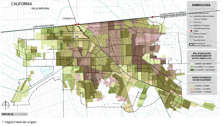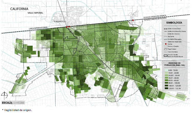 Los grandes cambios urbanos y sociales sucedidos en la segunda mitad del siglo XX, manifestaron sus consecuencias a partir de su última década, visibles tanto en el despoblamiento del barrio de Pueblo Nuevo, cuya densidad poblacional en el año 2000 fue de entre 40 y 80 habitantes por hectárea, lo que disminuyó en 2010 a un rango de entre 20 y 40 habitantes por hectárea;34 así como en la dispersión de la densidad poblacional en la ciudad, ante lo cual, el Plan de Desarrollo Urbano del Centro de Población de Mexicali 2025 (PDUCP-2025) menciona que: