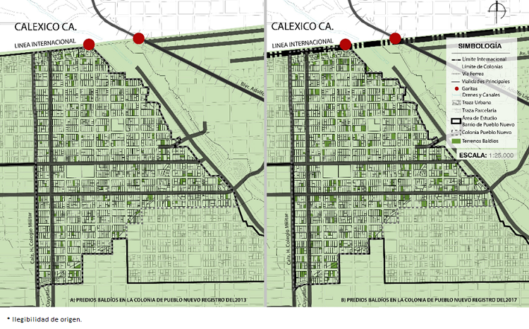 Asociado a los datos hasta ahora descritos sobre el desarrollo de nuevas actividades económicas en el sector terciario y el aumento poblacional entre las décadas de 1990 y 2010, se encuentra la desproporcionada oferta de vivienda de interés social. Nuevamente, este fenómeno es resultado de la intervención de poderes políticos y económicos sobre el espacio urbano. Ante ello, el Instituto Municipal de Investigación y Planeación Urbana de Mexicali (IMIP) declaró que, derivado del abandono y la no utilización de grandes suelos industriales a partir del año 2000, “[…] el desarrollo inmobiliario en la ciudad presta atención al mercado de la vivienda, aprovechando la ampliación del financiamiento para la adquisición de vivienda de interés social”.36