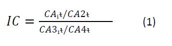 Si IC es igual a 1, el consumo de agua por la actividad industrial de la empresa i es igual al nacional, no posee privilegios respecto a otras empresas a lo largo del país; si es menor a 1 quiere decir que no es muy depredadora por el consumo de agua, pero si supera a 1, posee ventajas con respecto al resto de las industrias. Si este estadístico es ponderado mediante la disponibilidad de agua en la región, el indicador ayudará a explicar los beneficios que, por la concesión y el consumo de agua, obtienen los productores de cerveza y bebidas.