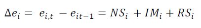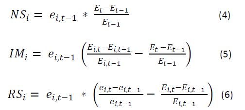 Donde: NS es el efecto nacional, IM la mezcla industrial más RS, efecto regional comparado, es igual al crecimiento económico en un periodo determinado; en este caso hicimos el cálculo de 2009 al 2014, con datos de los censos económicos. Para cada uno de los tres componentes se utilizan las siguientes fórmulas: