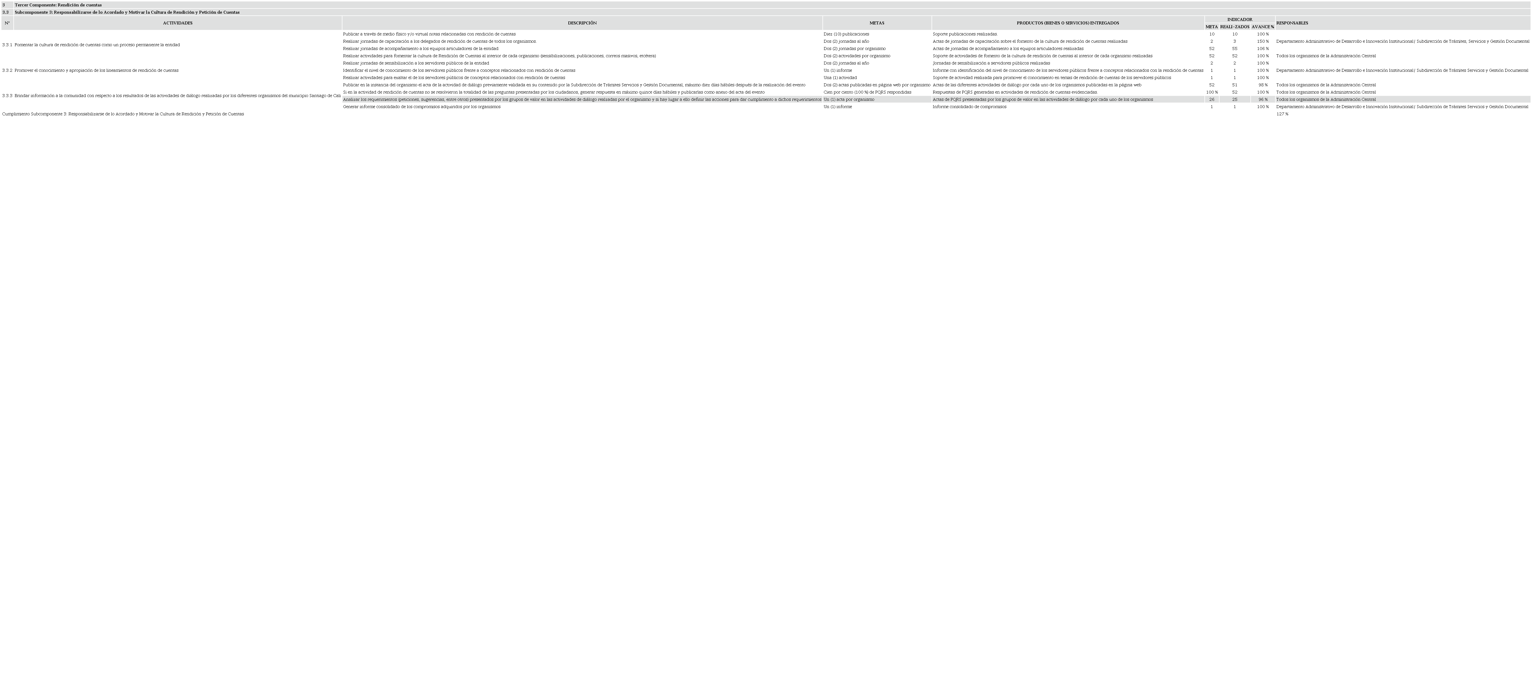 Subdirección de Trámites, Servicios y Gestión Documental, Informe final componente 3 - rendición de cuentas. Plan Anticorrupción y de Atención al Ciudadano (Santiago de Cali: Alcaldía de Santiago de Cali, 2020), 2.