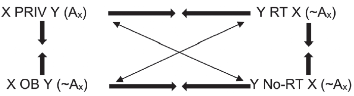 X OB Y (Ax), and Y OB X (Y prevent Ax)