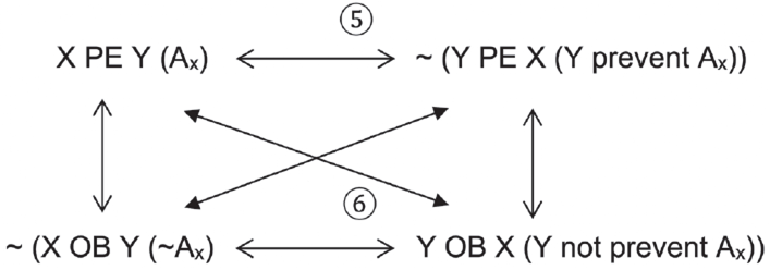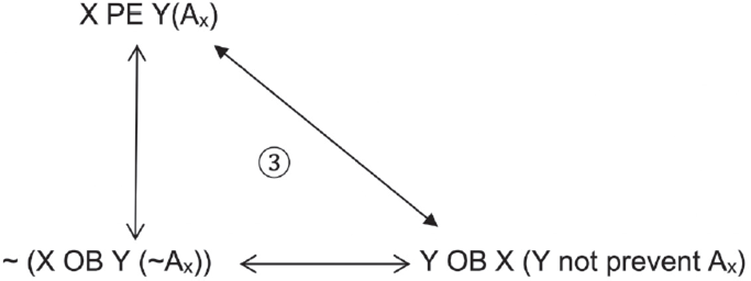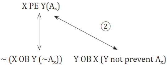 If X PE Y (Ax), then ~Y OB X (Y prevent Ax)