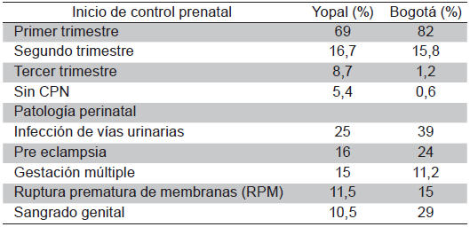 Los datos de control prenatal en Yopal indican que a pesar de que en la mayoría de los casos se realizan los controles prenatales y las pacientes son remitidas, probablemente el acceso a seguimiento de alto riesgo y la adherencia a las pautas de control prenatal requieren mayor atención, mostrando una inequidad en la calidad de controles prenatales. En cuanto a la atención del parto sí encontramos que en Yopal el 96% hubo atención por un profesional de la salud y más del 50% nació por cesárea, resultado esperable por tratarse de gestaciones de alto riesgo.