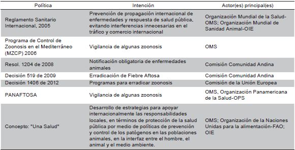 En el período considerado se adoptaron, entre otras, políticas internacionales cuya ejecución incidió en las zoonosis de manera directa o indirecta. En el Cuadro 1 se presentan de manera sintética este tipo de políticas, que sirvieron de marco para las decisiones nacionales.