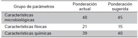 Conclusions : A new weighting method for the parameters evaluated with the IRCA is proposed to make this index more representative of the risk to health. In addition, future studies should carry out a thorough statistical analysis on the size of the sample that allows the obtained results to be reliable for decision makers to improve the quality of drinking water.