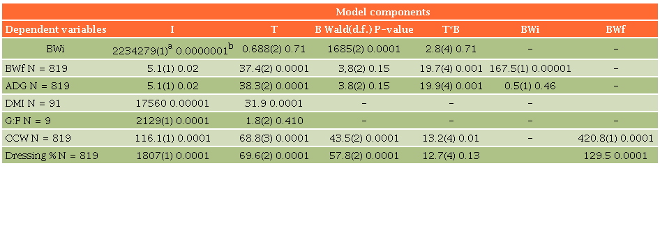 This study aimed to determine whether the pharmacodynamic effects of a generic ZH statistically differed from the reference ZH formulation, using a non-inferiority assay27 based on weight gain, secondary productive parameter variables, and the sensorial characteristics of the meat. Table 2 shows the Wald values for each model, their degrees of freedom (d.f.) and P-values. The observed results between ZHg and ZHr (Table 3) are statistically indistinguishable with a 95 % CI.