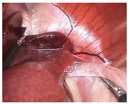 An important difference between human and rabbit anatomy is that the liver of the latter is lobulated. Consequently, use of liver separators when performing Nissen fundoplication in rabbits is recommended.(22 In this study, laparoscopic forceps were used for separation of liver lobules. Careful handling of liver was essential since the parenchyma is quite friable. As done by other researchers, we dissected the left and median hepatic ligaments, which are closely attached to the abdominal esophagus.22 Furthermore, we separated the phreno-esophageal membrane, which was an easy process because it has no fat. Our surgical procedure differed from that of Luks et al22 since we did not consider that the diaphragmatic cruras were difficult to dissect. This was probably due to their smaller size in the rabbit.