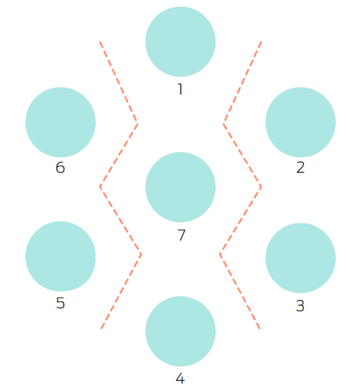 Tomando como base el diseño de Darbyshire,6 se hicieron pruebas de precipitación en agar mediante la técnica de microplaca para observar la precipitación de ambos virus con sueros homólogos y heterólogos. El diseño consistió en 6 pozos dispuestos en forma circular y un séptimo pozo en el centro. Los dos ejes transversales prueban que los virus son precipitados por cualquiera de los sueros, sean homólogos o heterólogos. El diseño puede observarse en la Figura 1.