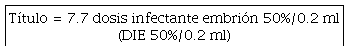 Para obtener la dosis infectante embrión 50% (DIE 50%) se aplicó el mismo procedimiento descrito para la titulación del virus de GET.