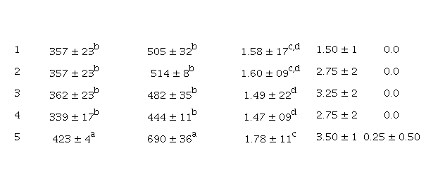 Los Cuadros 2, 3 y 4 muestran el desarrollo del peso corporal a los 21, 42 y 56 días de experimentación de los diferentes tratamientos. A partir de la tercera semana de edad, todos los tratamientos en donde se aplicó la restricción en el tiempo de acceso al alimento fueron afectados en la ganancia de peso, con diferencia significativa (p<0.01) en relación con el testigo, el cual presentó un mayor peso corporal al final de la crianza. A medida que la restricción de alimento fue más prolongada como en el tratamiento 2, en donde inició desde el día 8 hasta los 56 días de edad con 8 horas diarias de acceso al alimento, el peso corporal se afectó considerablemente (11.2%), mostrando diferencia significativa (p<0.01) en relación con los tratamientos 1, 3 y 5 al final de la crianza, según lo muestra el Cuadro 4. Como era de esperarse el consumo de alimento se vio disminuido de manera significativa (p<0.01) en los tratamientos en donde se aplicó restricción, véanse los Cuadros 2, 3 y 4. El efecto de la restricción de alimento sobre el índice de conversión alimenticia tuvo efectos favorables, como lo muestra el sistema de restricción desde el día 8 hasta el día 42 (tratamientos 1 y 4, 7% menor crecimiento), en los que al final de la crianza presentaron los mejores índices en relación con el testigo (p<0.05), como se observa en el Cuadro 4. Esto puede ser debido a un aumento de consumo ya que el ave se acostumbra a determinado tiempo de acceso al alimento; en consecuencia, se mejora el aprovechamiento de los nutrimentos proporcionados. Sin embargo, el testigo presentó un mayor índice de mortalidad general al final de la crianza (Cuadro 4), en relación con los tratamientos en donde se restringió el tiempo de acceso al alimento (p<0.01); la causa más frecuente de mortalidad en el testigo fue el síndrome ascítico. Este último disminuyó en 88% con el uso de programas de restricción alimenticia, mostrando una marcada diferencia (p<0.01) en relación con el testigo, como se observa en el Cuadro 4. Cabe señalar que la aparición del síndrome ascítico fue a partir de la segunda semana de edad en el testigo y en los tratamientos con restricción en la quinta semana. El tratamiento testigo también presentó los costos de producción más altos, 6% en relación con los tipos de restricción temprana y continua hasta los 42 días de edad (tratamientos 1 y 4), los cuales presentaron los mejores resultados en este trabajo.