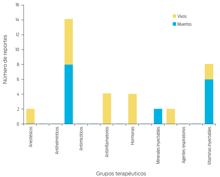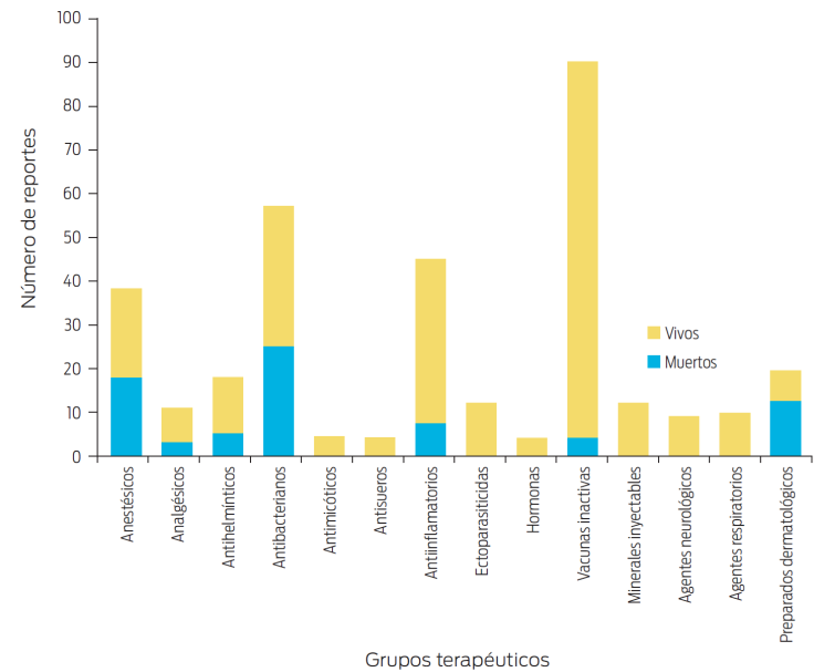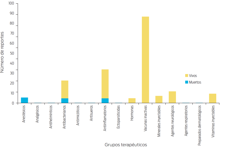 El ejercicio médico conlleva la premisa hipocrática de primum non nocere (lo primero es no dañar); por ello, esta revisión pretende estimular a los clínicos a distinguir las RA y documentarlas a fin de enriquecer el quehacer clínico. Adicionalmente, a fin de tomar medidas correctivas, se deberá distinguir entre una RA inducida por sobredosis, clasificada como reacción tipo “A” y una generada por el mecanismo de acción del medicamento o por su interacción con otro, conocida como reacción tipo “B”. Desafortunadamente, aún no se tiene una red de información sobre RA, como la que se ha instrumentando en otras partes del mundo. Un ejemplo de los beneficios de un sistema de acopio de los informes de RA en equinos, se presenta en las Figuras 1- 4, de las que se pueden derivar datos de utilidad clínica, como la identificación del grupo farmacológico más relacionado con RA fatales y reacciones anafilácticas, que en el caso citado fueron los antibacterianos. Se destaca la elevada incidencia de RA en el tercer y quinto año de vida, posiblemente relacionando la edad con el número de fármacos utilizados en caballos dedicados a competencias de velocidad. Curiosamente, las vacunas arrojaron el mayor número de reacciones locales, aunque ninguna de ellas fatales.274