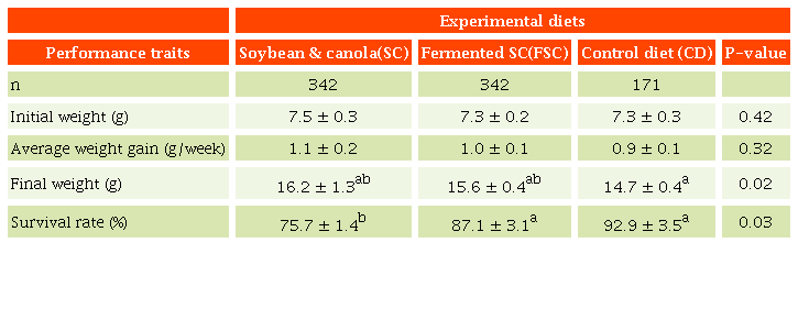 Keywords: Soybean, canola, fermentation, shrimps, yield, quality.