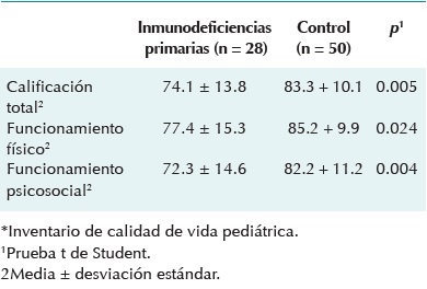 Hasta hoy no existe un instrumento específico para medir calidad de vida en enfermos con inmunodeficiencias primarias. El PedsQL es el cuestionario que ha sido más utilizado en niños con diagnóstico de inmunodeficiencias primarias.20-28 Existen algunos reportes, la gran mayoría de ellos en ensayos clínicos, en los que se ha utilizado para comparar dos o más tratamientos, pero hay muy poca información a escala mundial de la calidad de vida en las inmunodeficiencias primarias y es nula en el caso de nuestro país.