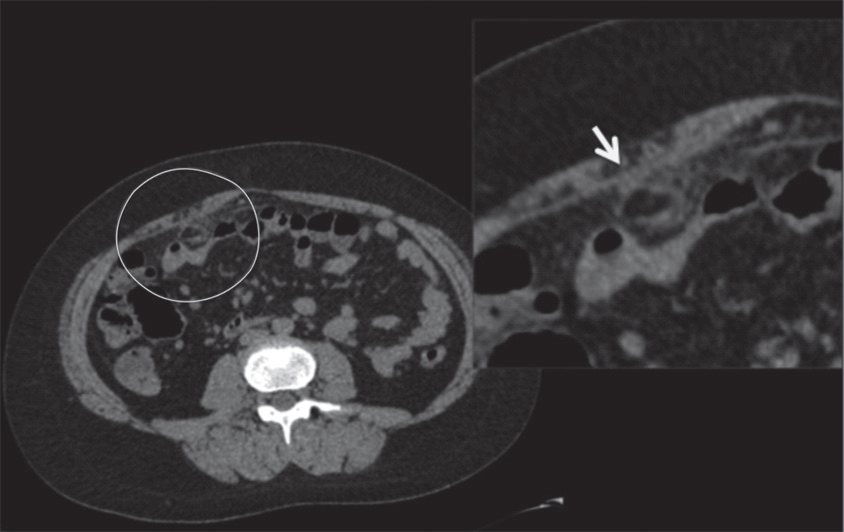 11. Tutar NU, Ozgul E, Oguz D, et al. An uncommon cause ofacute abdomen–epiploica appendagitis: CT findings. TurkJ Gastroenterol. 2007;18:107-110.