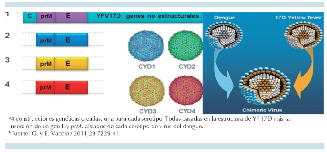 El virus del dengue es un Flavivirus de la familia Flaviviridae, existen cuatro serotipos de dengue, cada uno genera una respuesta inmunitaria a la infección única en el hospedero, distribuidos a lo largo de las regiones tropicales y subtropicales de todo el mundo y de algunas regiones templadas de Estados Unidos, Europa, África y Medio Oriente. Estos cuatro serotipos son genéticamente similares, comparten aproximadamente 65% de su genoma y son transmitidos a primates no humanos (forma selvática) y humanos (forma humana) principalmente por el mosquito del género Aedes. Los virus del dengue selváticos son evolutiva y ecológicamente distinguibles de los virus del dengue humanos. Episodios esporádicos de infecciones selváticas en humanos en Asia y África sugieren que los virus del dengue selváticos regularmente entran en contacto con seres humanos. Se tenía el temor de que los virus del dengue selváticos pudieran interferir con la inmunidad de las vacunas en desarrollo; sin embargo, se ha comprobado que hay una robusta inmunidad cruzada homotípica de serotipo entre las cepas selváticas y humanas. No obstante, existen informes de un 5° serotipo durante un brote en Malasia en el año 2007. Al principio se pensaba que era una variante del serotipo 4; sin embargo, cuando unos simios Rhesus, a los cuales se había preinfectado conlos otros 4 serotipos y se habían recuperado ya,se infectaron con el serotipo DENV-5 produjeron una significativa y diferente gama de anticuerpos.Esto podría ser problemático para las vacunas tetravalentes que están en tercera fase de desarrollo. La buena noticia es que esta nueva varianteaún no se ha establecido como tal en el ciclode transmisión humana y se piensa que sea unaforma selvática.9-13