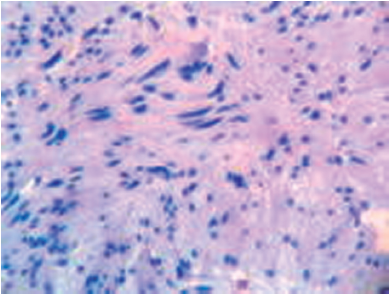 La evolución posoperatoria fue desfavorable ya que persistía con datos de obstrucción intestinal, por lo que se decidió la reintervención encontrando adherencias generalizadas y adenitis mesentérica, así como zona de estrechez en íleon terminal a 10 cm de la válvula ileocecal. Se efectuó lisis de adherencias, descompresión manual y obtención de biopsia ganglionar mesentérica.