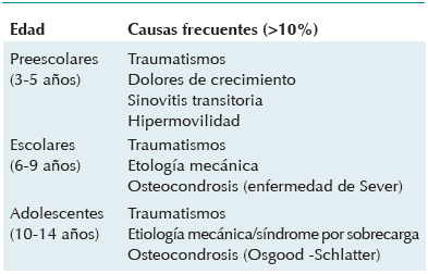 El dolor musculoesquelético representa una de las causas más frecuentes de dolor recurrente en pediatría. En general no existe un antecedente traumático evidente sino que los pacientes presentan síntomas, de manera intermitente, desde tiempo antes de solicitar la evaluación; en estos casos, los niños son llevados a consulta por otro motivo y, una vez allí, sus padres mencionan la presencia de dolor musculoesquelético. Menos frecuentemente el motivo de consulta es cojera o incapacidad funcional de aparición brusca sin antecedente traumático previo.