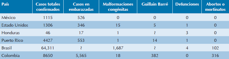 En elCuadro 1 se presentan los países de América más afectados, así como las manifestaciones clínicas secundarias a la infección. Ante esta perspectiva, miembros de la Academia Mexicana de Pediatría A.C. y de la Coordinación de Estudios Avanzados sobre Maltrato Infantil/ Prevención del Instituto Nacional de Pediatría (CEAMI-P-INP) revisaron la literatura nacional e internacional sobre el tema, para presentar e insistir a la comunidad médica las características más importantes del agente causal, del vector, los daños descritos en los productos durante la gestación, las acciones requeridas en las mujeres embarazadas, las medidas sanitarias, ambientales que se deben establecer y los cuidados que las personas deben tener para evitar o disminuir las posibilidades de adquirir la infección.