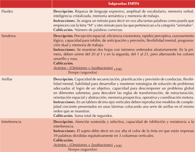 23. Portellano JA, Martínez R, Zumárraga L. ENFEN: Evaluación Neuropsicológica de las Funciones Ejecutivas en Niños. Madrid: TEA Ediciones. 2009.