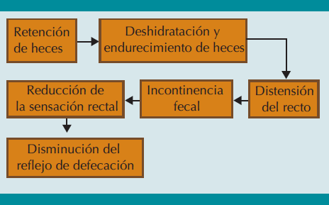La constipación es una entidad clínica caracterizada por una disminución de la frecuencia de las evacuaciones, retención de heces, evacuaciones dolorosas o duras, heces de gran tamaño e incontinencia fecal. Múltiples causas orgánicas han sido descritas; sin embargo, la causa más común es funcional (i.e. no existe evidencia de una etiología orgánica), lo cual corresponde a un 90-95% de los pacientes con constipación. La constipación funcional es un comportamiento o instinto aprendido causado principalmente por evacuaciones dolorosas y factores sociales. El paso de una evacuación dura y dolorosa genera miedo en el niño, provocando el instinto de retener las evacuaciones y un “círculo vicioso” (Figura 1). La constipación funcional es un problema complejo y comprende una variedad de factores contribuyentes (modelo conceptual psicosocial) como son: anormalidades de la motilidad gastrointestinal; hipersensibilidad visceral; problemas psicológicos; microbiota intestinal alterada; eventos traumáticos; evacuaciones dolorosas; cambios en la dieta, entre otros.4-7