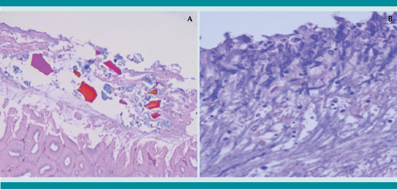 Colonización de bacterias gramnegativas en úlceras esofágicas.