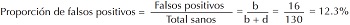 De acuerdo con los datos que se resumen en la tabla de contingencias de 2 x 2 (Figura 3), los parámetros mencionados pueden calcularse de la siguiente manera: