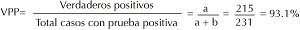 Valor predictivo positivo (VPP). Probabilidad de que un paciente tenga la enfermedad si la prueba resulta positiva. Es igual a los verdaderos positivos (= a) entre el total de los casos con prueba positiva (= a + b): a/(c + d).