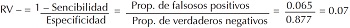 ¿Qué sucedería si la prueba fuera negativa bajo la misma circunstancia? En este caso, hay que multiplicar el momio preprueba por RV-, 0.07.
