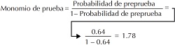 Ahora ejemplificaremos la determinación del cambio de la probabilidad preprueba y posprueba. De acuerdo con el artículo de Smith AF en este hospital de tercer nivel de atención, entre los pacientes que llegan con sospecha clínica, 64% tiene, verdaderamente, el infarto de miocardio. Supóngase que al atender a un paciente el médico tratante tuvo la impresión de que fue un típico caso que se envía al servicio, por lo que dejó su probabilidad preprueba de tener infarto de miocardio igual que la prevalencia en su servicio, que es de 64%. Al aplicar la prueba de CK resultó positivo con este paciente. Para evaluar cómo repercutió este resultado en la probabilidad posprueba, primeramente hay que convertir la probabilidad preprueba en el momio preprueba.