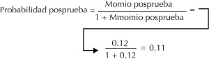 Al utilizar estas dos ecuaciones puede hacerse la conversión de probabilidad momio y momio probabilidad. Así que, a partir de la determinación de la probabilidad preprueba, por la mediación de la aplicación de una prueba diagnóstica, se obtiene la probabilidad posprueba del paciente en el siguiente procedimiento:[2,4,5,10]