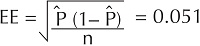 Si hay una prueba diagnóstica con la que esperamos una sensibilidad, digamos, de 85%, el producto 0.85 × 0.15 = 0.1275 es la varianza estimada. Dividiendo este valor por un tamaño de muestra y calculando su raíz cuadrada se obtiene el error estándar. Si contamos con 49 sujetos enfermos: