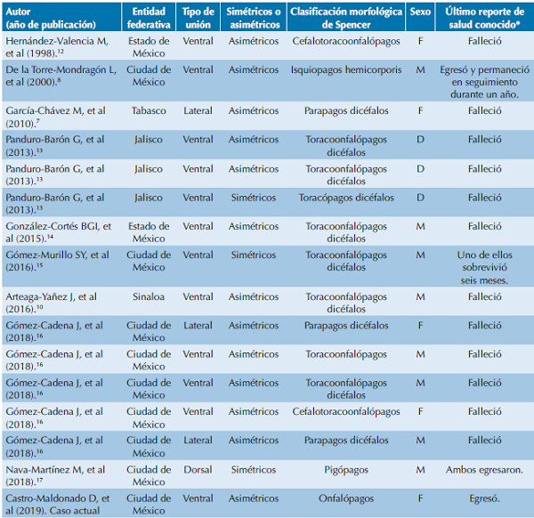 *: Este artículo debe citarse como Castro-Maldonado D, Pérez-Huitrón MA, Serrano-Almanza XL, Ramírez- García B. Gemelos onfalópagos: re- porte de un caso. Acta Pediatr Mex. 2019;40(5):267-73.