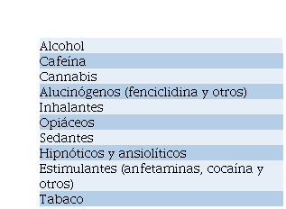 En la moderna clasificación de los trastornos mentales (Manual Diagnóstico y Estadístico de los Trastornos Mentales-DSM 5)5 están enumeradas diez sustancias con efectos posibles de consumo, abuso y adicción (Cuadro 1), incluido el juego de apuestas que comparte características similares con el consumo de otras sustancias.