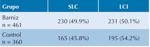 De los 821 molares detectados sanos (SLC) y con lesiones cariosas incipientes (LCI): 395 SLC y 426