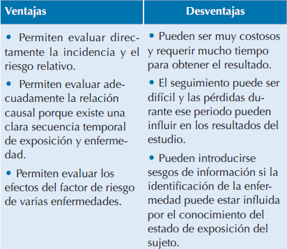 Como cualquier otro diseño, los estudios de cohorte tienen ventajas y debilidades con respecto a otros estudios observacionales, como se muestra en el Cuadro 1.4