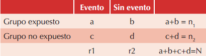 c: participantes no expuestos con el evento de interés d: participantes no expuestos sin el evento de interés