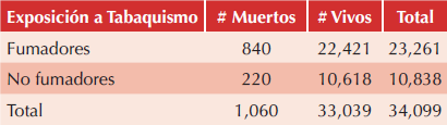 • Proporción: 79% de las muertes sucedieron en los fumadores [840/1,060 = 0.79]