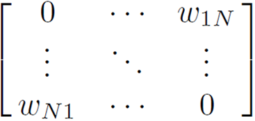 Para su cálculo se requiere la estimación de una matriz de pesos espaciales (también llamada de rezagos espaciales) que se representa por W, la cual es un instrumento que registra las interdependencias entre las unidades geográficas analizadas. W es una matriz cuadrada no estocástica cuyos elementos wij reflejan la intensidad de la interdependencia existente entre cada par de unidades territoriales i y j, que tiene la siguiente forma:
