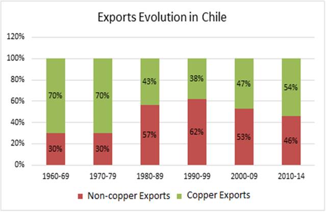The copper business gained a major importance in the Chilean economy between 1930 and 1970, copper sales represented 70% of Chilean exports (Nazer, 2004: 3). This situation generated a broad political debate about what to do with this industry. During the 1950s there were voices criticizing the fact that copper were in foreign hands. In 1951, the so-called Washington Agreement was signed. This agreement made available a 20% of the production for Chile. In 1955, the state created the Department of Copper, to conduct studies on production and sales as well as exercise control in the industry (Correa et al., 2001).