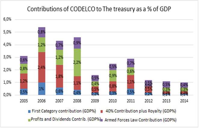 The importance of the copper industry for the economy and CODELCO for the treasury makes the budget formulation process depends heavily on earnings projections of the company (which in turn depend on the price of copper). Since 2001, Chile’s fiscal policy is based on a rule of structural adjustment, called Balance Cyclically Adjusted (BCA). This makes it even more necessary that financial organization of the company in terms of corporate governance may be well defined so that it can match its contribution to the Chilean State and its financial sustainability that clear rules should consider reinvestment of profits.