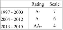 To measure the credit risk in this study, credit rating and distance to default (DtD) were considered. The credit rating corresponds to the risk rating assigned to each asset (bond in this case) that has been issued by the firm. It corresponds to the risk rating average given by the three major rating agencies, following the coding proposed by Covitz and Downing (2007) for credit ratings: AAA = 1, AA + = 2, ..., BBB- = 10, which in the case of Codelco, the following Scale is presented: