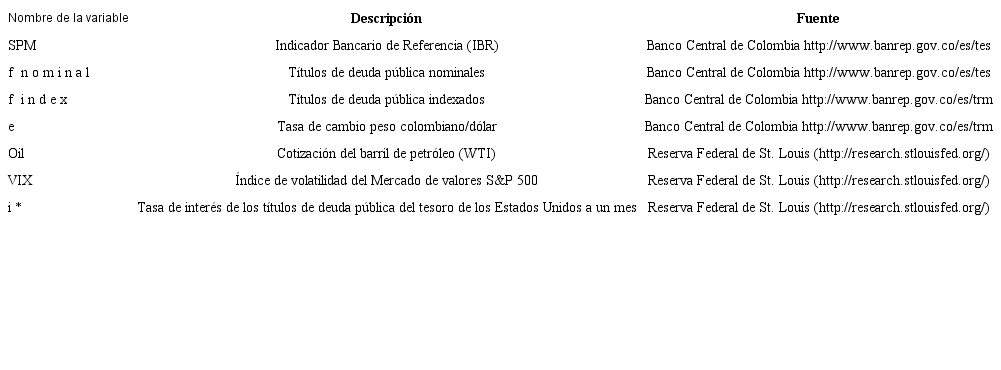Los datos usados en este estudio corresponden al período que se extiende entre enero de 2008 hasta diciembre de 2016. La fuente y las estadísticas descriptivas de las variables se presentan a continuación en la tabla 1 y tabla 2.