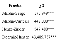 En el cuadro 2 se presentan los resultados de pruebas relacionadas con la hipótesis de normalidad multivariada para la distribución conjunta de los rendimientos bursátiles y cambiarios. Como puede verse, en todos los casos se rechaza fuertemente la hipótesis nula de una distribución normal conjunta.
