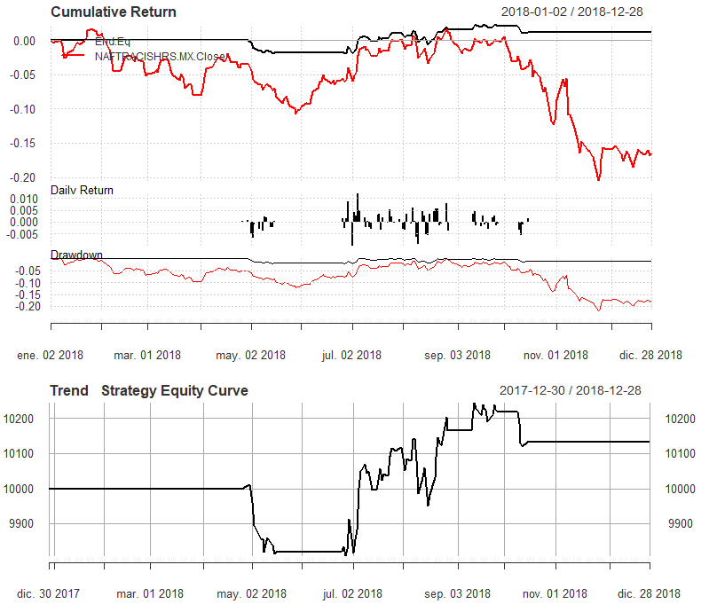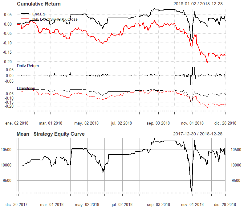 While NAFTRAC ended up with a negative return in 2018, HUELUM can take advantage of NAFTRAC behavior optimizing the strategies presenting a profit.